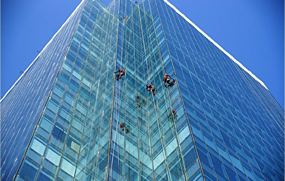 玻璃幕外墻清洗方法將吊繩在坐式吊板上的U型蟹扣里打好一個特殊的結,在板邊栓上吊桶,里面裝少半桶清潔劑。作業人員帶上玻璃刮洗器...